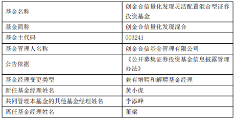 中国经济网北京11月21日电 近日,创金合信基金公告称,创金合信卷发现黄小虎受聘担任混合投资,董亮辞职。黄小虎于2017年12月加入安信证券股份有限公司,担任信息技术中心数据挖掘岗位。加入大成基金管理有限公司。2021年1月加入创金合信基金管理有限公司,担任量化指数及国际部研究员、投资经理。他目前担任基金经理。创金合信卷发现,混合空调成立于2016年9月27日,2025年11月20日,其今年的SA收益率分别为15.37%、14.54%,成立以来的收益率分别为45.25%、34.86%,累计净值为1.4525元。n 和 1.3486 元。